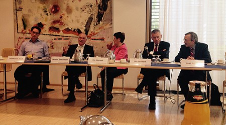 Die Vertreter des DSFI, der Vorsitzende Otto Bernhardt, Martin Patzelt (MdB, Mitglied des Menschenrechtsausschusses) und Christian Zimmermann (Herausgeber des spotlight menschenrechte) sowie die Exiliranischen Gesellschaften als Veranstalter forderten: