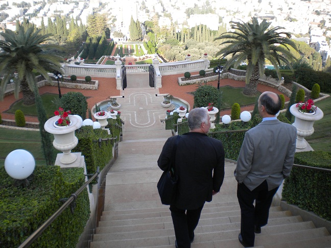 empfangen und persönlich durch die Bahai-Gärten geführt. Während des