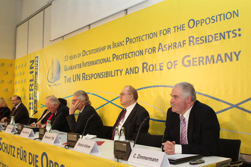 Die Vertreter des DSFI, der Vorsitzende Otto Bernhardt, Martin Patzelt (MdB, Mitglied des Menschenrechtsausschusses) und Christian Zimmermann (Herausgeber des spotlight menschenrechte) sowie die Exiliranischen Gesellschaften als Veranstalter forderten: