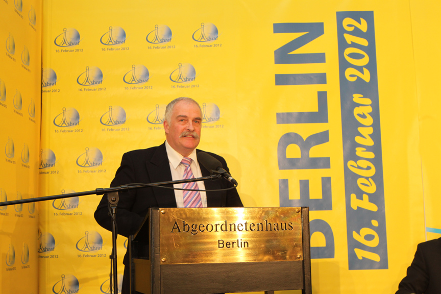 Christian Zimmermann Mitglied des Vorstandes des DSFI und Herausgeber von „Spotlight Menschenrechte“Für unseren Umgang mit dem Iran, wo auch immer, oder wie jetzt 'mal wieder in Wien: Wir brauchen eine klare und unmissverständliche Anspracheund harte Forderungen an das Regime:Stoppen Sie ihre unmenschliche und allen internationalen Prinzipien widersprechende Politik gegen das eigene Volk und gegen den Weltfrieden! Alle Teilnehmer dieser Konferenz waren sich in diesem Punkt einig.Diktaturen brauchen energischen und unbeugsamen Widerstand, auch wenn er einen hohen Preis erfordert - bis hin zum Einsatz des eigenen Lebens.Heute ist der 8. April, der Internationale Tag des Gedenkens an den Holocaust, an das unvorstellbareVerbrechen an den Juden durch einen Staat, nämlich das Deutsche Reich unter seinem Führer Adolf Hitler, seine Schergen und Mitläufer.Ich war dabei, als die Präsidentin des iranischen Widerstandes , Frau Maryam Rajavi, anlässlich ihresersten Berlinbesuches das Mahnmal für die ermordeten Juden in Europa besuchte. Damit machte sie deutlich , dass jede Diktatur zum Widerstand verpflichtet und die Verbrechen gegen die MenschlichkeitundVölkermord den Widerstandskampf legitimieren.In Wien finden wider einmal Verhandlungen mit den Vertretern des Iran statt. Statt klarer Forderungen und der Berücksichtigung der Menschenrechte als elementaren Teils der Gespräche höre ich schon wieder aus den Verlautbarungen der europäischen Vertreter Beschönigungen.Stoppen Sie endlich Ihr Verständnis für eine der schrecklichsten Diktaturen der Welt.Wir verlangen das Ende der Diktatur, das Ende der Hinrichtungen, der willkürlichen Verhaftungen und Haftbedingungen, der Folter und der gesellschaftlichen Unterdrückung. Wir fordern internationale Solidarität mit der Opposition und demiranischen Volk!